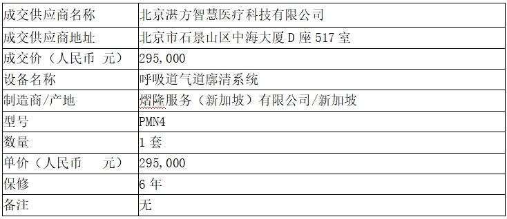中日友好医院2025年呼吸道气道廓清系统采购项目成交结果公告