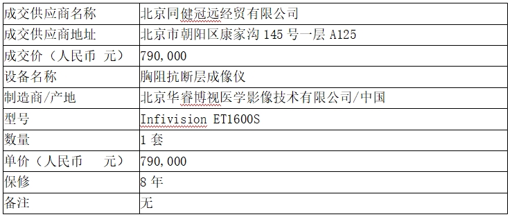 中日友好医院2025年胸阻抗断层成像仪采购项目成交结果公告